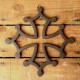 Décoration murale en fonte en forme de croix occitane munie d'un crochet pour la suspendre au mur