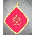 Manique coton qualité supérieure, broderie croix occitane et Toulouse- Avec ganse d'accrochage- 19cm x19cm.