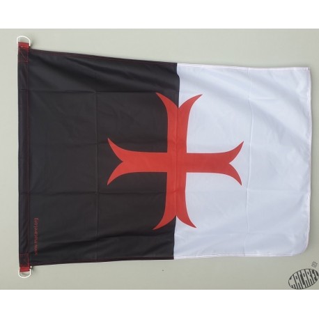 drapeau templier Baussant en polyester 110g. Dimensions 70cmx100cm. Bande de renforcement sur un côté avec 2 anneaux plastique pour accrochage