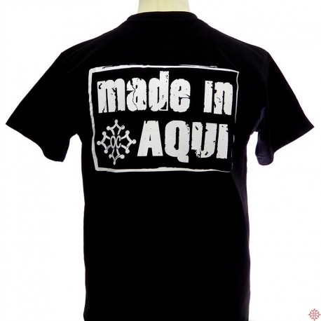 Tshirt humour occitan noir avec dans le dos l'inscription Made in Aquí